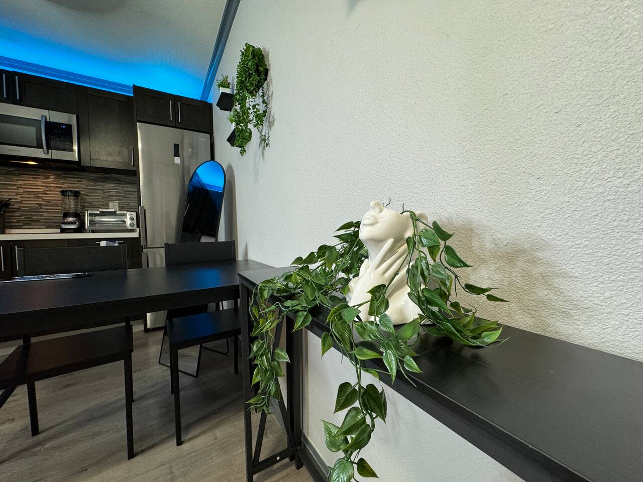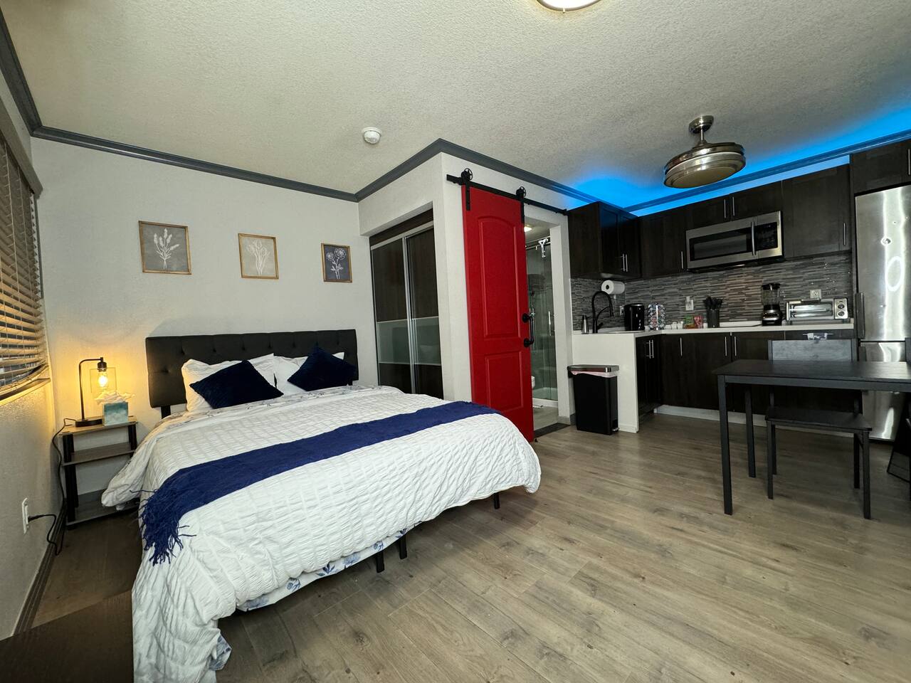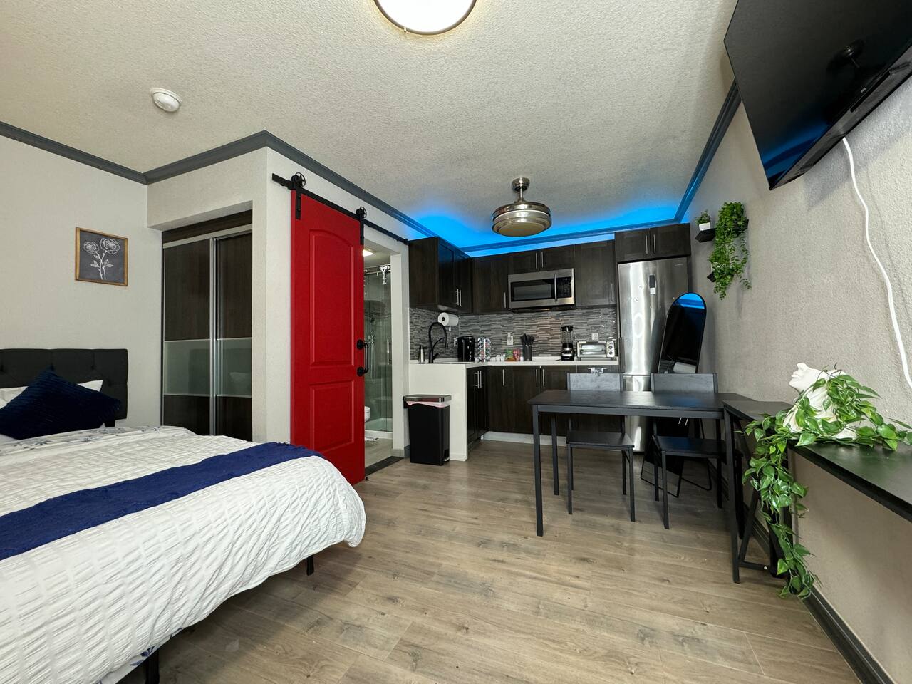 Welcome to your urban oasis in the heart of downtown Las Vegas, where style meets comfort in our chic condo near Fremont. This isn't just accommodation; it's an experience designed to exceed your every expectation. As you step inside, you'll be greeted by a space that effortlessly combines modern amenities with stylish comfort. The plush queen bed, adorned with brand new linens and a fluffy comforter, promises nights of blissful sleep after days filled with Vegas adventures. And with a smart TV offering complimentary high-speed Wi-Fi, you can stay connected while relaxing in style. For the caffeine enthusiasts, our k-cup coffee maker offers a variety of brews to savor, accompanied by an array of included coffees and teas. The fully equipped kitchen is a chef's dream, featuring everything from a blender to a can opener, ensuring culinary delights are always within reach. But the luxury doesn't stop there; our bathroom is a sanctuary of indulgence, complete with tiled walls, a white furry rug, and a rejuvenating rain shower head. And with an app-operated washers and dryers just steps away, laundry day is a breeze. Dine in style at our chic dining table or unwind in the private living room, where smart living extends to climate control with a remote-controlled air conditioner and heater. Plus, enjoy the added security provided by a smart door lock and building security cameras. With the iconic Fremont Street Experience mere blocks away, immerse yourself in the vibrant energy of downtown Las Vegas while enjoying the safety and security of our well-lit and camera-secured building. Every detail has been meticulously curated to ensure your stay exceeds expectations, from colored accent lighting to a full-length mirror. This is more than just a place to stay; it's an invitation to experience Las Vegas in unparalleled comfort and style. Book now for an unforgettable blend of modern convenience and Vegas excitement!
