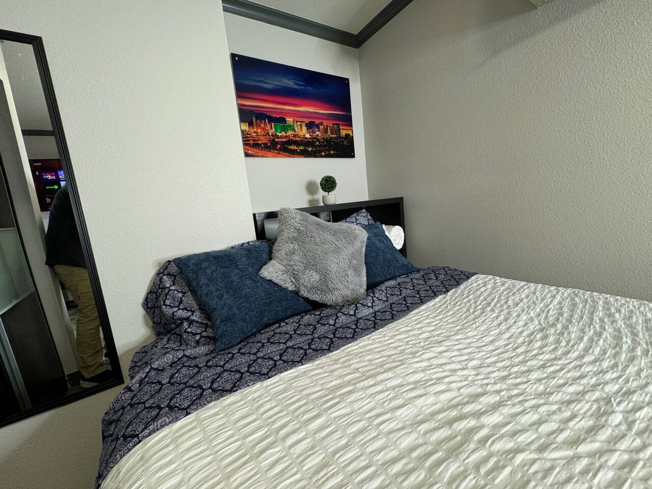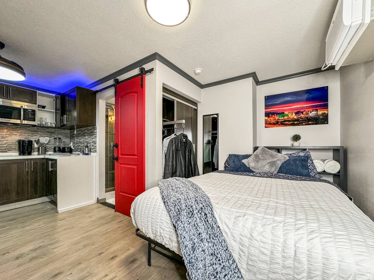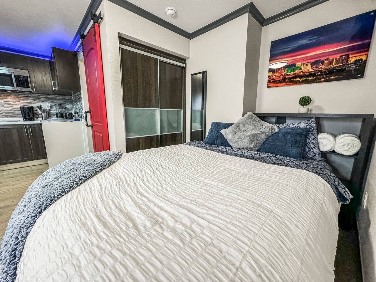 Indulge in the ultimate downtown Las Vegas experience with our newly updated condo! Step into a space that combines modern amenities and stylish comfort. Relax in the cozy queen bed adorned with brand new linens and a fluffy comforter (plus an additional Twin size air mattress for more sleeping space), and enjoy entertainment on the smart TV with complimentary high-speed Wi-Fi. For caffeine enthusiasts, savor your favorite brews from the convenient k-cup coffee maker, complemented by a variety of included coffees and teas. The kitchen is fully equipped with a blender, toaster, pot, pan, and all the essentials – from utensils to a can opener. The bathroom is a sanctuary of luxury, featuring tiled walls, white furry rug, and a rejuvenating rain shower head. A modern red barn door adds a touch of quaint elegance. We provide ample toilet paper, paper towels, bath towels, and hand towels, ensuring your comfort throughout your stay. You also have access to an app-operated washers and dryers in the laundry room only 30 feet away. Dine in style at the chic dining room table with three chairs. The kitchen boasts a stovetop, microwave, and refrigerator, allowing you to whip up delicious meals at your convenience. Organize your wardrobe effortlessly with space-saving slide-out clothing hangers in the closet. Smart living extends to climate control with a remote-controlled air conditioner and heater, ensuring your comfort in any season. Experience added security with a smart door lock, and rest easy knowing the building is monitored by cameras and an advanced front door keypad lock. The location is unbeatable – just three blocks away from the world-renowned Fremont Street Experience. Immerse yourself in the vibrant energy of downtown Las Vegas while enjoying the safety and security of our well-lit and camera-secured building. Every detail has been carefully curated to provide you with a memorable and enjoyable stay. From colored accent lighting to a full-length mirror, our condo is designed to meet your every need. Book now for an unforgettable blend of modern convenience and Vegas excitement!