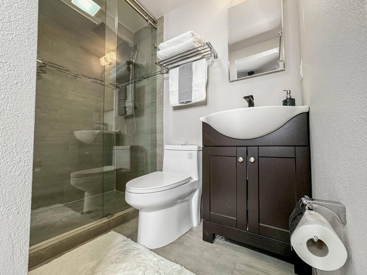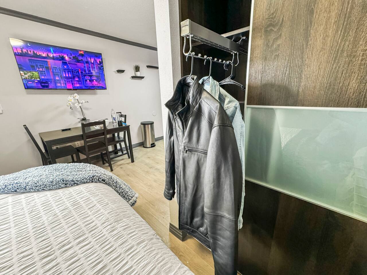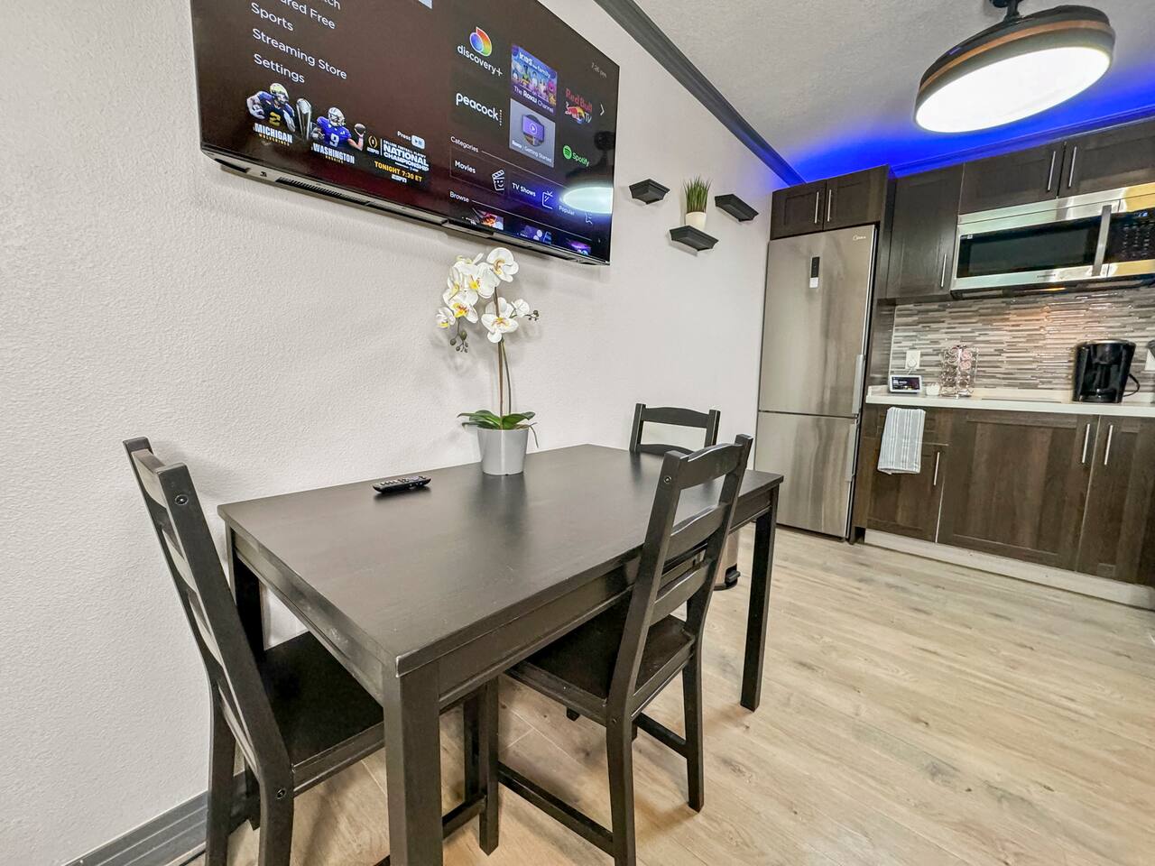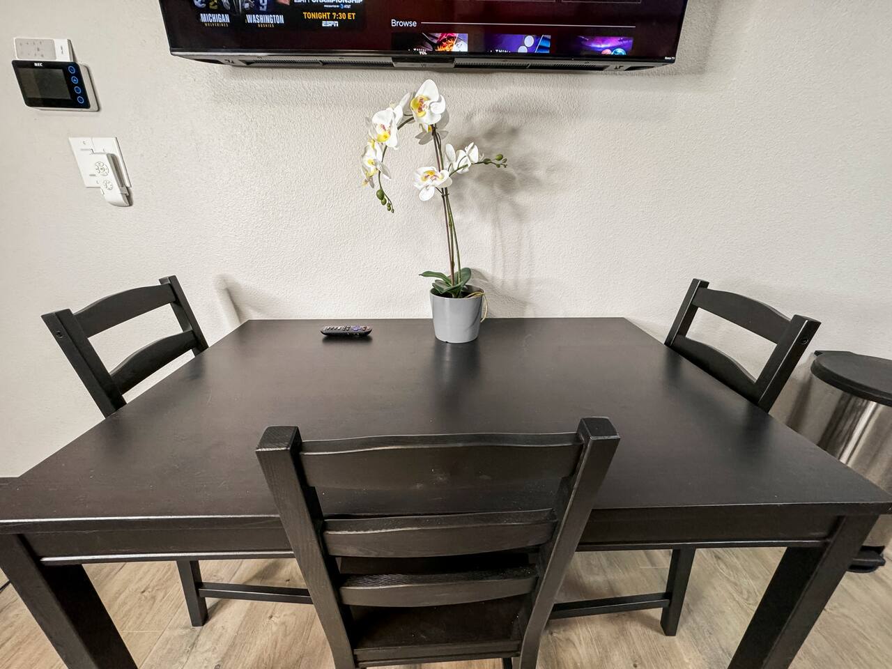 Indulge in the ultimate downtown Las Vegas experience with our newly updated condo! Step into a space that combines modern amenities and stylish comfort. Relax in the cozy queen bed adorned with brand new linens and a fluffy comforter (plus an additional Twin size air mattress for more sleeping space), and enjoy entertainment on the smart TV with complimentary high-speed Wi-Fi. For caffeine enthusiasts, savor your favorite brews from the convenient k-cup coffee maker, complemented by a variety of included coffees and teas. The kitchen is fully equipped with a blender, toaster, pot, pan, and all the essentials – from utensils to a can opener. The bathroom is a sanctuary of luxury, featuring tiled walls, white furry rug, and a rejuvenating rain shower head. A modern red barn door adds a touch of quaint elegance. We provide ample toilet paper, paper towels, bath towels, and hand towels, ensuring your comfort throughout your stay. You also have access to an app-operated washers and dryers in the laundry room only 30 feet away. Dine in style at the chic dining room table with three chairs. The kitchen boasts a stovetop, microwave, and refrigerator, allowing you to whip up delicious meals at your convenience. Organize your wardrobe effortlessly with space-saving slide-out clothing hangers in the closet. Smart living extends to climate control with a remote-controlled air conditioner and heater, ensuring your comfort in any season. Experience added security with a smart door lock, and rest easy knowing the building is monitored by cameras and an advanced front door keypad lock. The location is unbeatable – just three blocks away from the world-renowned Fremont Street Experience. Immerse yourself in the vibrant energy of downtown Las Vegas while enjoying the safety and security of our well-lit and camera-secured building. Every detail has been carefully curated to provide you with a memorable and enjoyable stay. From colored accent lighting to a full-length mirror, our condo is designed to meet your every need. Book now for an unforgettable blend of modern convenience and Vegas excitement!
