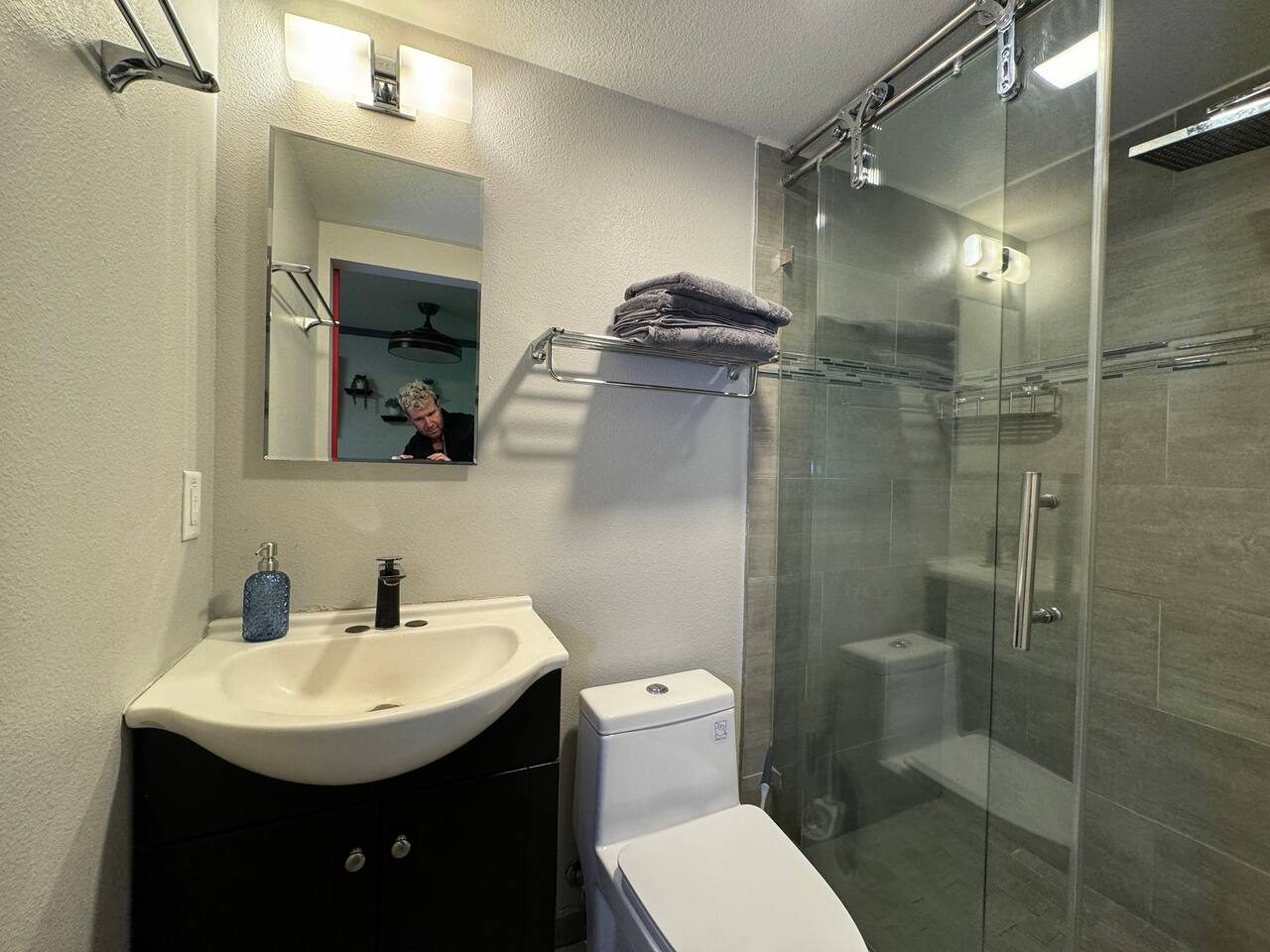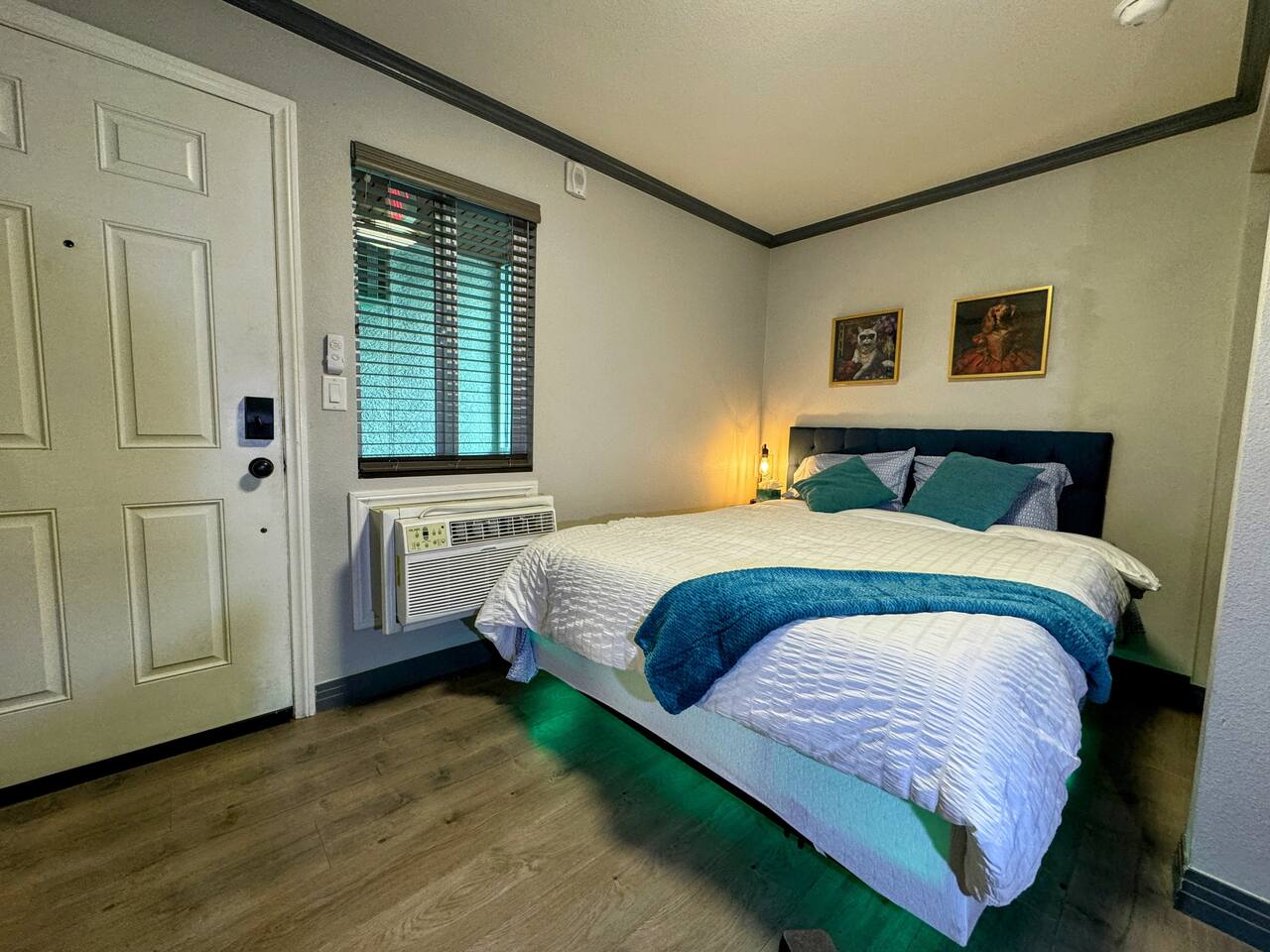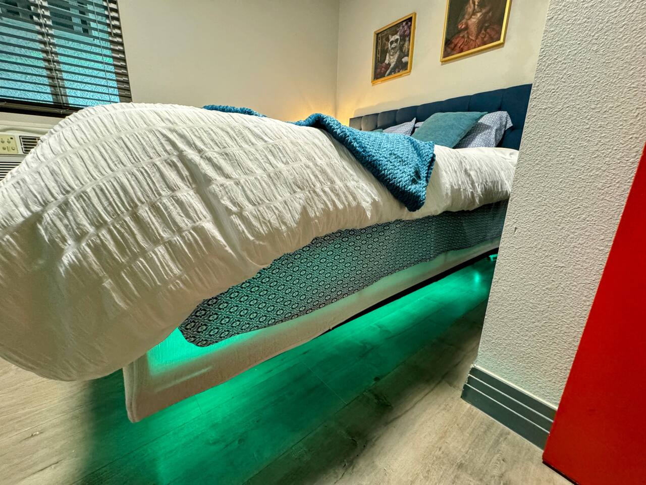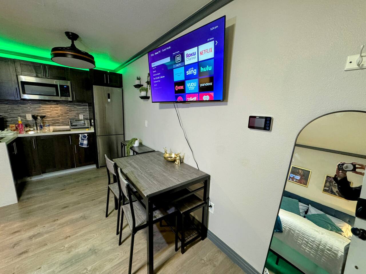 Indulge in the ultimate downtown Las Vegas experience with our newly updated condo! Step into a space that combines modern amenities and stylish comfort. Relax in the cozy queen bed adorned with brand new linens and a fluffy comforter (plus an additional Twin size air mattress for more sleeping space), and enjoy entertainment on the smart TV with complimentary high-speed Wi-Fi. For caffeine enthusiasts, savor your favorite brews from the convenient k-cup coffee maker, complemented by a variety of included coffees and teas. The kitchen is fully equipped with a blender, toaster, pot, pan, and all the essentials – from utensils to a can opener. The bathroom is a sanctuary of luxury, featuring tiled walls, white furry rug, and a rejuvenating rain shower head. A modern red barn door adds a touch of quaint elegance. We provide ample toilet paper, paper towels, bath towels, and hand towels, ensuring your comfort throughout your stay. You also have access to an app-operated washers and dryers in the laundry room only 30 feet away. Dine in style at the chic dining room table with three chairs. The kitchen boasts a stovetop, microwave, and refrigerator, allowing you to whip up delicious meals at your convenience. Organize your wardrobe effortlessly with space-saving slide-out clothing hangers in the closet. Smart living extends to climate control with a remote-controlled air conditioner and heater, ensuring your comfort in any season. Experience added security with a smart door lock, and rest easy knowing the building is monitored by cameras and an advanced front door keypad lock. The location is unbeatable – just three blocks away from the world-renowned Fremont Street Experience. Immerse yourself in the vibrant energy of downtown Las Vegas while enjoying the safety and security of our well-lit and camera-secured building. Every detail has been carefully curated to provide you with a memorable and enjoyable stay. From colored accent lighting to a full-length mirror, our condo is designed to meet your every need. Book now for an unforgettable blend of modern convenience and Vegas excitement!